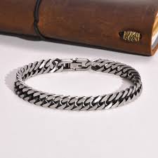 Retro Silver Color Stainless Steel Cuban Chain Bracelets for Men Male Gift Jewelry
